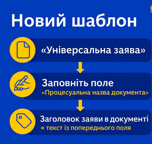Державним підприємством «Інформаційні судові системи» (далі – ДП ІСС) впроваджено в ЄСІТС новий шаблон «Універсальна заява» для подання звернень до суду в електронній формі.